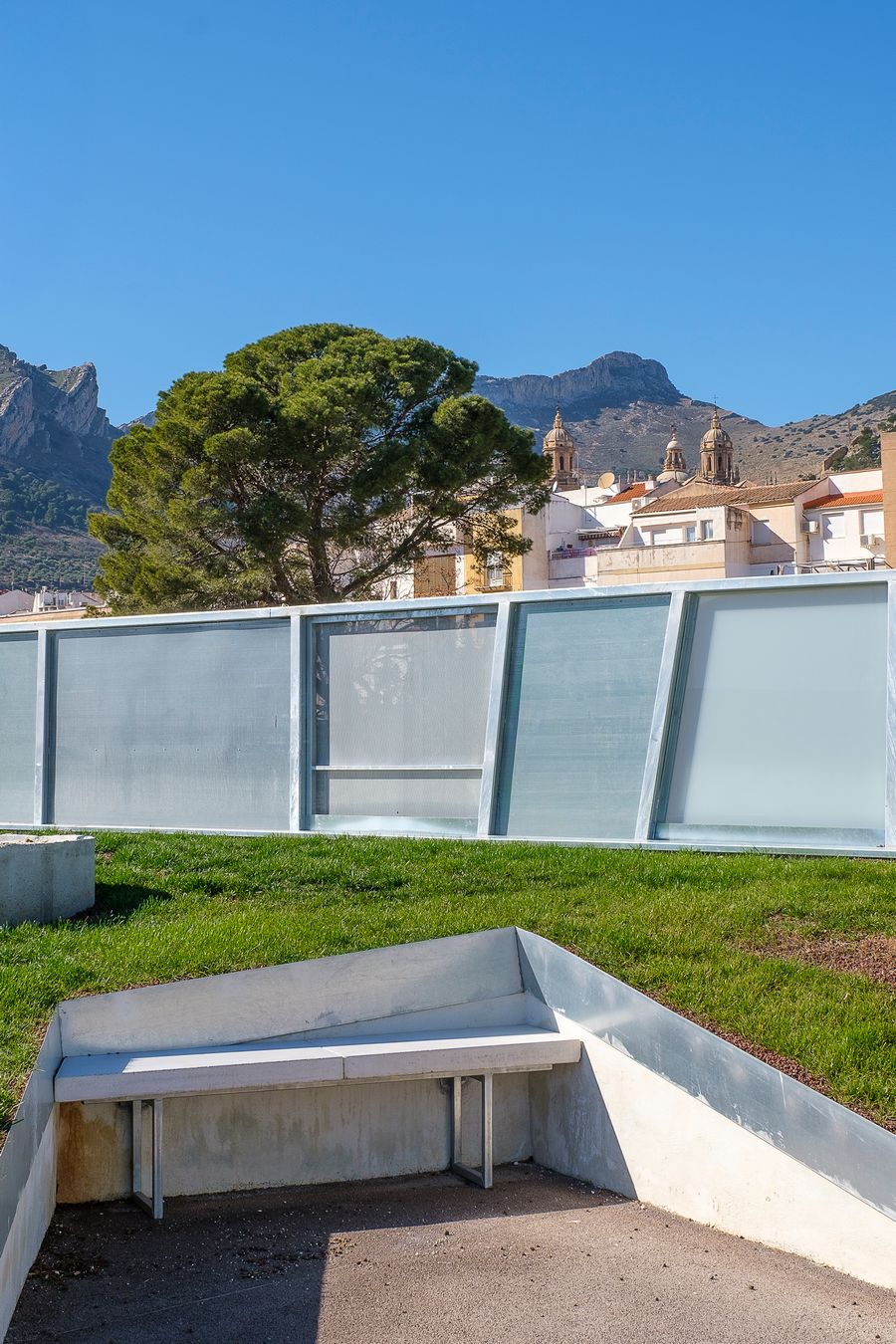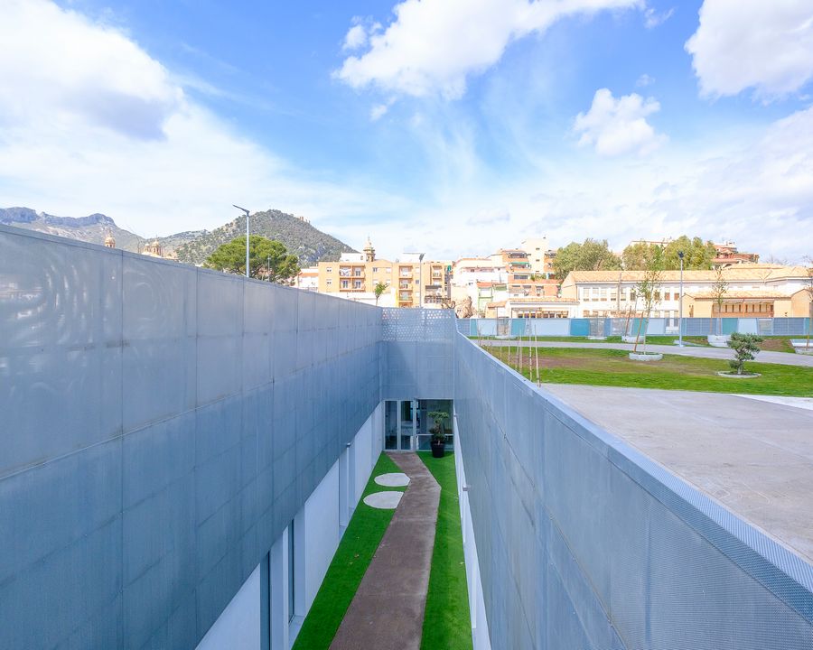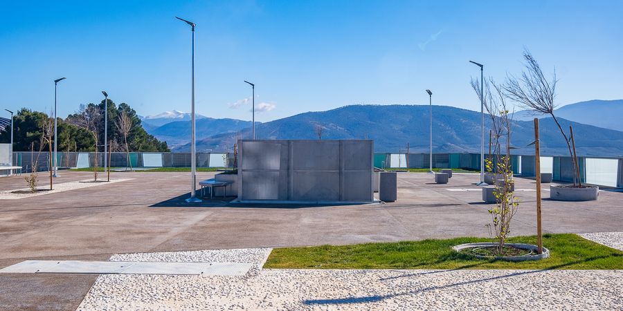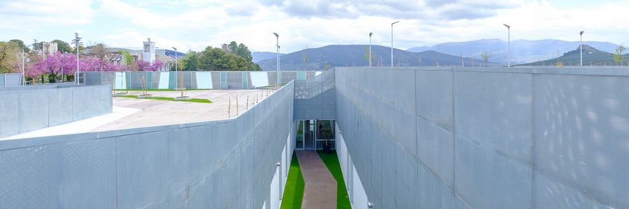 El edificio se adapta sutilmente a la topografía y se integra en la ciudad, en conexión con el paisaje lejano.
